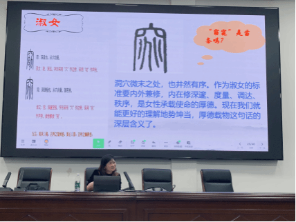 讲座伊始,曹宽如老师以中华文化源头《诗经》开篇,引领在场师生共同走进《关雎》这一千古名篇的优美意境。她并未局限于传统的诗文解析,而是以深厚的学养和独到的见解,从文字训诂、意象分析入手,层层深入地揭示了其中蕴含的先民审美情趣与深厚的礼乐文化内涵。曹老师指出,《关雎》所体现的“乐而不淫,哀而不伤”的中和之美,正是先秦礼乐文明追求社会和谐与人格完善的生动体现,其精神内核与我校所倡导的“楚怡精神”中追求卓越、内外兼修的工匠品格一脉相承。